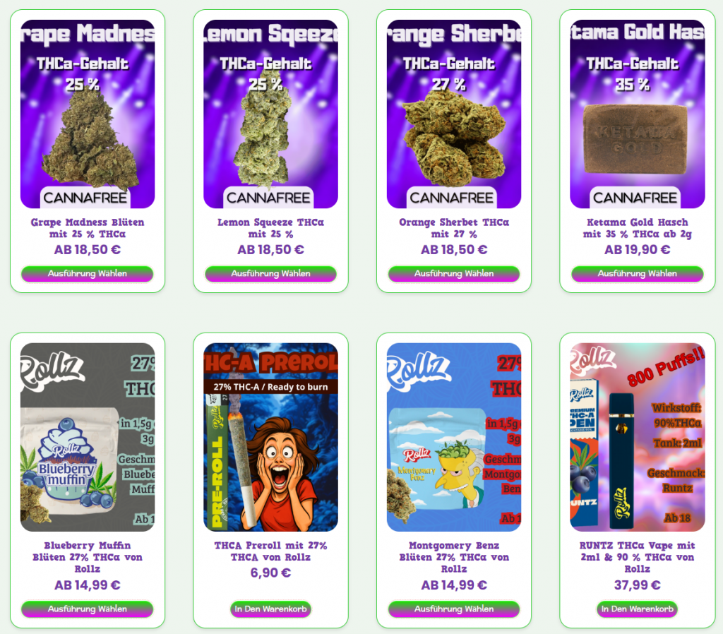 Daher empfehlen wir dir unsere Section mit THCa, der legalen Vorstufe von THC. Wirkt genauso, schmeckt und weckt, was in dir steckt!